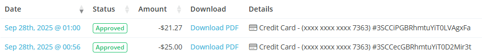 Simply click on the “Download PDF” option on the payment, and you can view or download a PDF receipt for your payment.