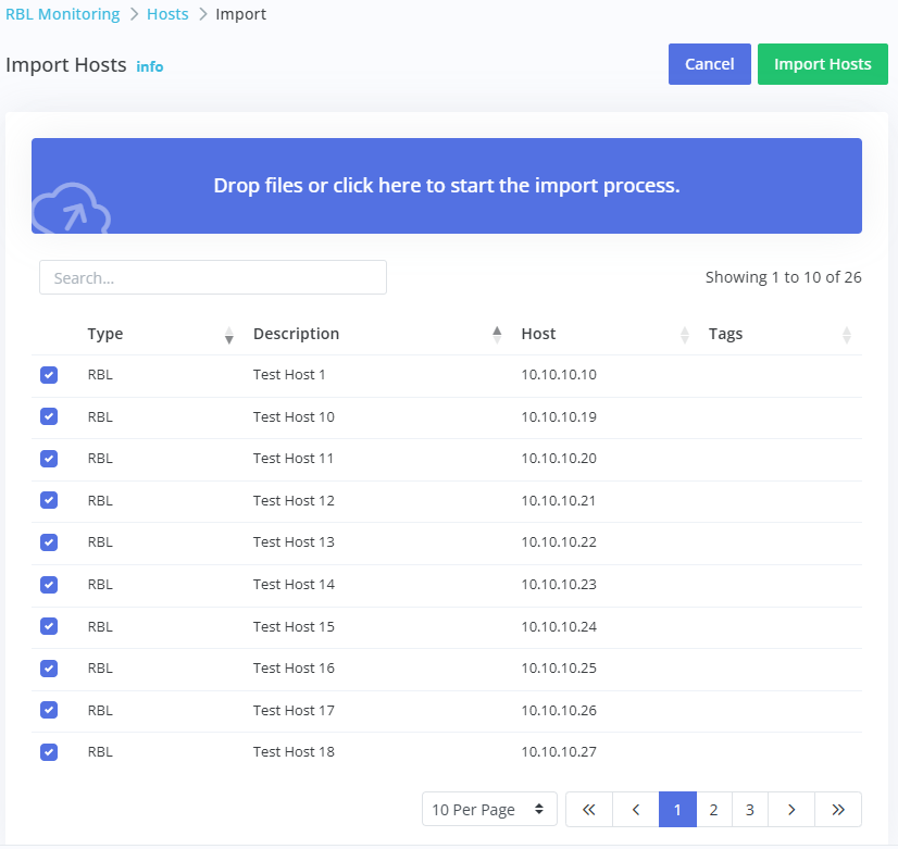 This will process your CSV document, and present you with a list of hosts to import. We will automatically remove duplicates, or mark hosts as invalid if we’re not able to parse or identify the values.