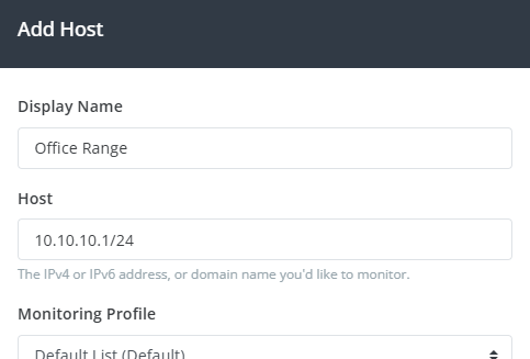 Rather than each individual IP address showing up under your list of hosts, you’ll see a single IP Range entry in your hosts list, and can be managed as a single entry.