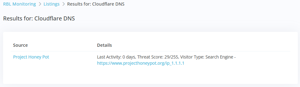 Click the Name link to drill down into host specific results, which will show the results from the most recent check for this host: